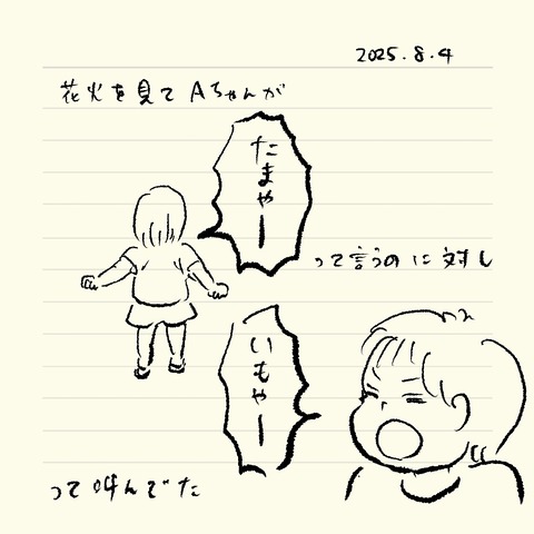 夏はいろんなイベントが盛り沢山で楽しそうなベベダモ。家の近くで見た大きな花火には元気よく「いもやーーー!」と叫び、あとは花火そっちのけで近所···